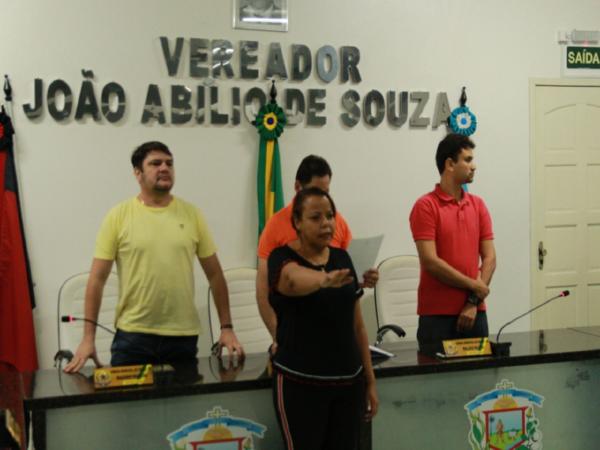 Tomou Posse, na tarde de hoje, dia 04/07/2019, às 15h 30min, a Vereadora Maria Jaklene Lopes da Silva, atendendo determinação do Ato da Presidência nº 003, de 03 de julho de 2019, em face da licença do Vereador José Geraldo Leite Mororó.